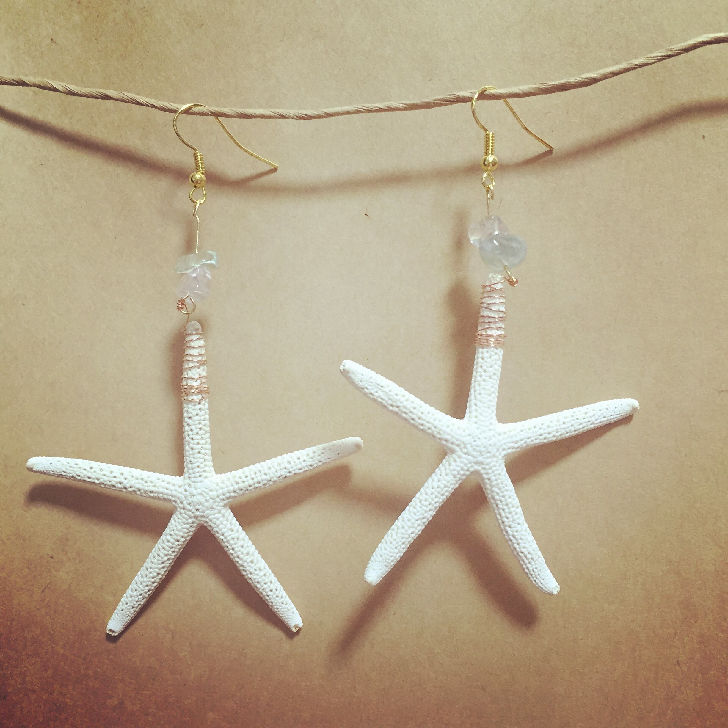 天然スターフィッシュ(アオヒトデ)モチーフのピアスです♪